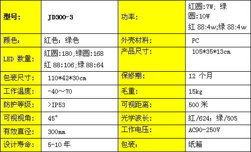 JD300-3-RG 三單元滿屏帶倒計時組合LED交通信號燈 采用超高亮度發光二極管芯片AlInGaP和InGaN作為產品的光源,低功耗,長壽命,維持產品合理成本。